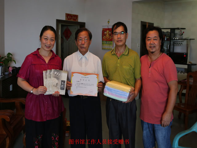 9月10日教师节当天,南宁市图书馆读者活动部全维明主任等一行来到怀念清华演讲团团长陈家骥教授家中,接受陈老先生著作——《我心怀念清华》共400册的捐赠。