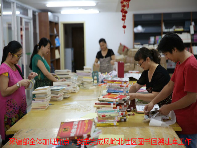 今年8月,市图书馆采编部领到任务以后,在做好本馆图书分编工作的同时,穿插分编和加工凤岭北社区的图书,严格按照城乡一体化联合图书馆章程的统一规定,在文献分类、书目数据著录、编码、馆藏代码、条码号取号、索书号取号等方面确保文献编目工作的规范化、标准化。全部门默默无闻、不计报酬、不讲条件、毫无怨言地加班加点,在一个多月的时间内,高效高质地为凤岭北社区分编著录了3950 种5852册图书,随书光盘79张,以确保这批图书能够尽快与社区居民见面,满足凤岭北社区居民在工作生活中不断变化和发展的知识需求。而即将正式揭牌的凤岭北社区图书馆也将成为南宁市图书馆真正意义上的第一个社区分馆。
