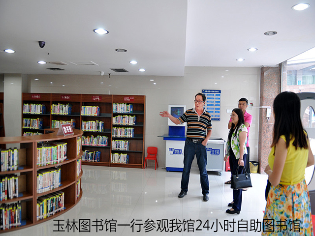 10月17日下午15时,玉林市图书馆馆长谢朝容等一行3人到我馆参观考察。我馆贺南潮馆长陪同来宾先后参观了24小时自助图书馆、市民阅读中心和启智书苑少儿阅览室。