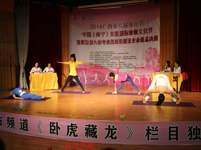 为推动全民健身运动的发展,11月2日,南宁市图书馆携手南宁梵雅瑜伽文化传播有限公司联合推出以“连接•分享•健康•魅力”为主题的2014年首届中国——东盟国际瑜伽文化节暨广西首届千人瑜伽展示系列活动,17位评委形成的靓丽阵容与参加活动的瑜伽选手的倾情表现在台上台下灿烂呼应,一起汇成了一个绚丽多姿的大舞台,如此体现运动美的赛事之后还将分别在11月13日、15日和16日开展3场。