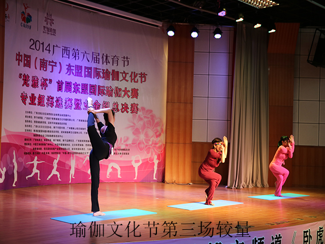 16日上午,由广西社体中心主办,南宁市图书馆等单位联合协办的2014中国南宁——东盟国际瑜伽文化节千人瑜伽公益大汇演南宁万达茂展示中心广场成功举行,千名瑜伽爱好者自带瑜伽垫,身着宽松自然、飘逸洒脱的瑜伽服,伴着悠扬而充满灵性的音乐,共同体验瑜伽之美。16日晚上,全国知名瑜伽大师、参赛选手、瑜伽爱好者们欢聚在南宁市会展中心锦宴大厅,这次广西规模最大、参与人数最多的瑜伽健身交流盛会在盛大的颁奖盛典中圆满落下帷幕。