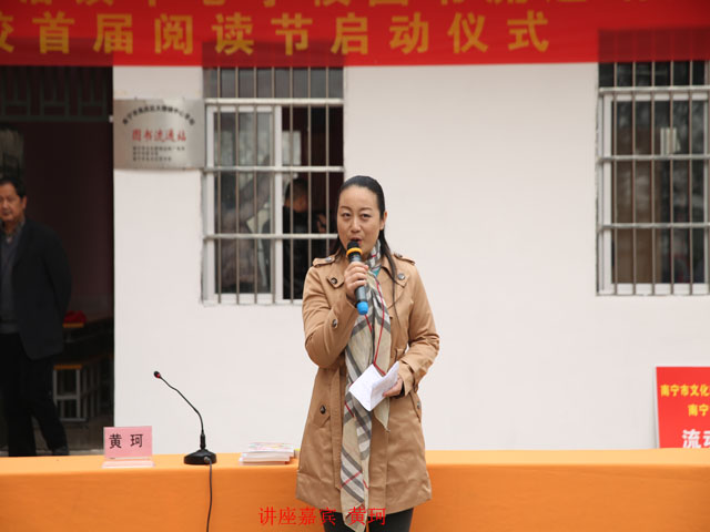 活动当天,南宁市图书馆为该校图书流通站送来了近2000册图书,为2400多名师生赠送了借书证。南宁市作协委员、南宁市图书馆读者活动部副主任黄珂受邀作为讲座嘉宾,与同学们分享了读书最重要的四点内容:读书的目的、读书的习惯、如何选择读书及感恩阅读。精彩的讲座受到同学们的热烈欢迎,黄珂老师也将自己带来的图书奖励给了踊跃举手参与问答互动的同学们。在随后举办的有奖知识竞答活动中,同学们积极地参与答题,赢得了不少笔记本、尺子等学习小用具。读书热情高涨的同学则捧起心仪的新书,在流通站的图书室里、在操场边上津津有味地阅读起来。