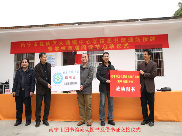 1月21日,南宁市图书馆第72家馆外图书流通站在良庆区大塘镇中心学校揭牌成立。同时,大塘镇中心学校首届阅读节也拉开了序幕。