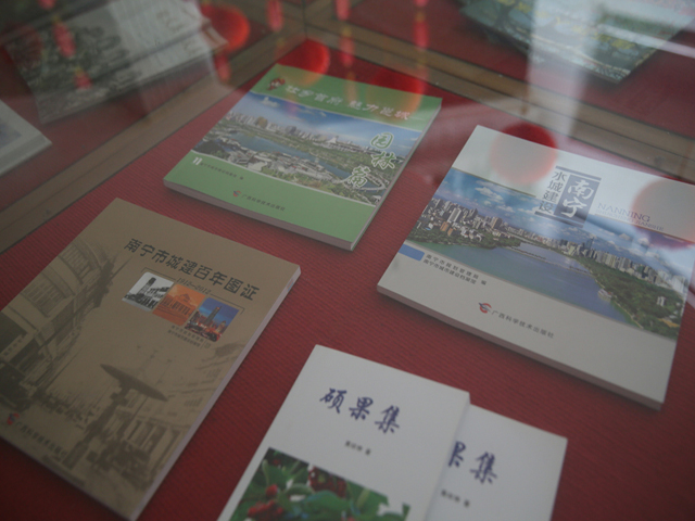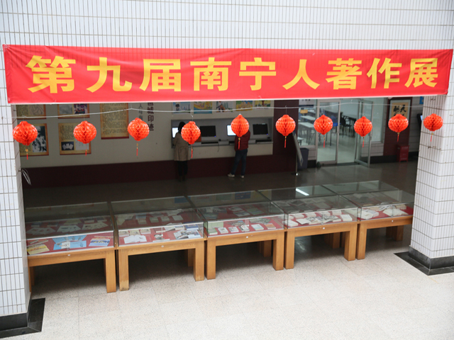 南宁市图书馆此次还展出了黄少雄的《难忘的知青岁月》、周树宁的《中国农民读<论语>》、陆运高的《看版图学中国历史》系列丛书、马金案的《东南亚丛林奏战歌》、朱俊傑的《墨韵心语》郭小平的《回望流淌的岁月》等图书;此外,《南宁市城建百年图证》《陶义美》《热土真情》《韦纯束》《走进红水河》《谢兰昆》《广西通志》《广西文化年鉴》《广西博物馆文集》《广西老年书画家作品选集》等地方文献也大放异彩,作家李康、黄祥伸、佟义东、石卫的作品也在此展之列。