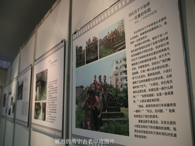 该展摄影作者麦松强用多年时间拍摄、编辑了“寻根南宁”专题摄影作品集,用一个“老南宁”的视角对南宁古建筑进行直觉捕捉,力求将南宁的“古”用自己镜头里的点滴还原给大众。正因他敏锐的视角,使该展内容丰富且丰满,300多幅摄影作品中涵盖了广大市民所熟悉的“水塔角”“双孖井”“镇宁炮台”“金狮巷”、上林县的“六合大宅颂碑”等南宁古迹,以图文并茂的形式,综合介绍了“南宁”名称的由来、南宁古迹与传说、消逝的南宁古迹、古“邕州八景”和新“南宁十景”等。