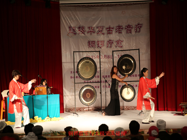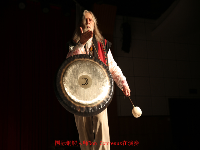 在之后进行的铜锣音乐会上,国际铜锣大师Don Conreaux和国际光钵演奏师Mojca Malek演奏的铜锣音乐出神入化,或敲、或摇、或抹、或拍……锣声忽远忽近、忽大忽小,悠扬中荡漾着铜锣特有的韵律,现场观众无不深切感受到铜锣这种乐器的古老与神秘,甚至感受到锣声穿透身体的每一个细胞和每一束纤维,推走内心深处的阴霾,情绪和思想在锣声中从下意识里被激发出来,整个神经系统处于一种压力之下,激发自我调节和自我减压。与此同时,古典舞蹈、古琴演奏和太极表演等中国传统的文化元素贯穿其间,为活动增色不少。