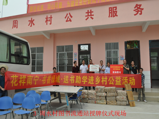 4月2日,南宁市图书馆第一个村级流通站——马山县周鹿填周水村村级服务中心流通站挂牌成立,标志着南宁市图书馆的文化服务向三级公共图书馆网络服务体系迈进。
