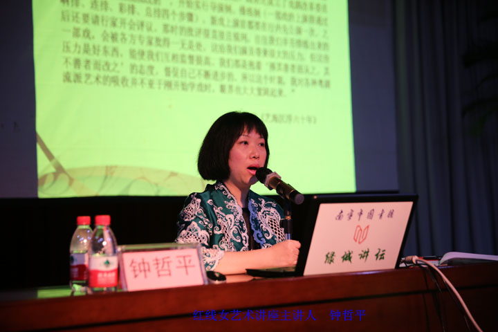 结合展览和纪录片的内容,现场观众对红线女一生的艺术成就有了一定了解。主讲人《羊城晚报》资深记者钟哲平在讲座中则对红派艺术所体现的历史内涵做了深刻剖析。1951年,在设计并演唱了新戏《一代天骄》之后,红线女在粤剧艺术大师马师曾、黄超武的指点下,意识到要形成自成一家的独特唱腔,从娇俏玲珑、婉转多姿、市井气息浓郁的“女腔”逐渐演变成了刚健富丽、雅正高华的“红腔”。1955年,红线女毅然放弃香港如日中天的事业回归祖国大陆,更发展出了以“刚健富丽的红腔、融汇南北的表演风格和左翼文学为代表的剧目”三位一体的艺术风格,称为“红派艺术”。 此外,她主演了上百部脍炙人口的粤剧和近百部电影,永不止息地对粤剧进行创新求索、保护研究、传承发展、教育推广,让粤剧艺术蜚声国际,大大促进了中外文化交流,也让粤剧这一非物质文化遗产得以发扬光大。毛泽东主席在多次看过红线女的戏后写信鼓励她“……活着,再活着,更活着,变成了劳动人民的红线女”。红线女也以此自勉,数十年的艺术生涯不断追求真善美,竭尽所能为人民服务,塑造了粤剧史上最具有时代精神的丰碑。正如红线女所说“我的生命属于艺术,我的艺术属于人民”,她实实在在地成为了一名“劳动人民的红线女”。