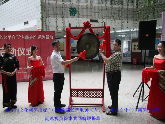 南宁市文化新闻出版广电局副局长、局党组成员程弘帅、广州市文化广电新闻出版局副巡视员徐彬、红线女艺术中心主任蒙菁、广州粤剧院有限公司董事长余勇、红派艺术传人、红线女艺术中心及广州粤剧院著名花旦苏春梅、香港新光戏院总经理王昆穗、澳门萦笙辉曲艺会理事梁锦宽等领导嘉宾出席了开幕式。南宁市图书馆馆长贺南潮也率部分职工参加了活动。