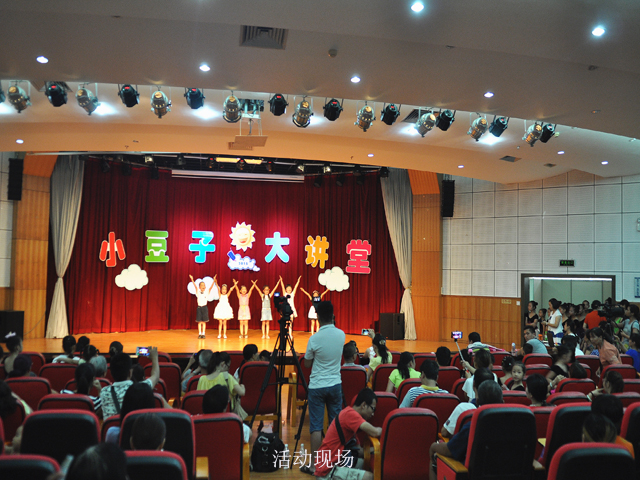 6月22日,夏至节令。这天本是端午小长假的最后一天,南宁市图书馆的小读者和 “跳跳豆”学校的老师、孩子和家长们近1000多人欢聚一堂,到南宁市图书馆多功能报告厅参加“小豆子,大讲堂”汇报演出,同时欢度端午佳节。