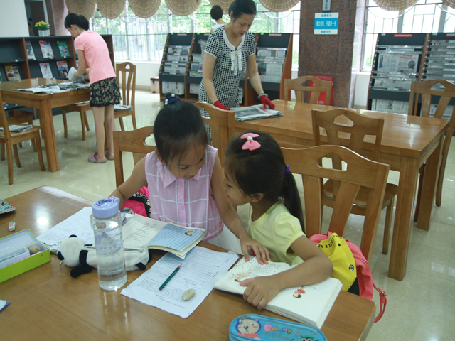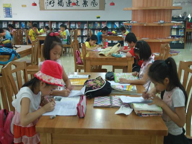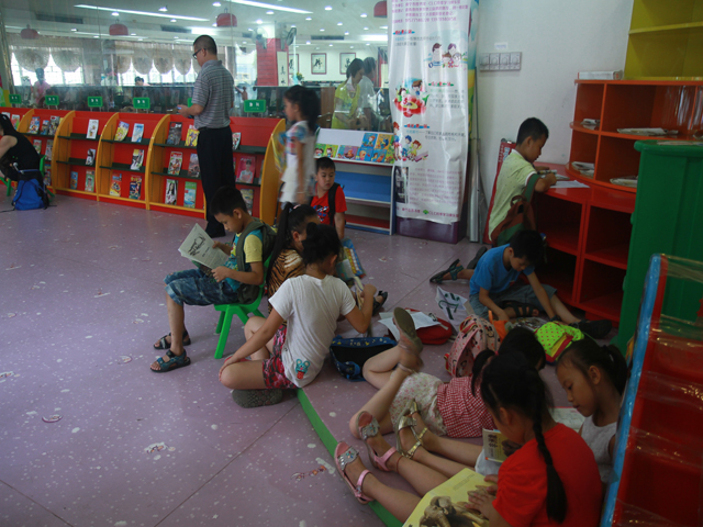 同学们还利用等车回程的间隙,在“启智书苑”——少儿阅览室、市阅读中心里抓紧实践阅读起图书来,有的拿着自己喜爱的图书席地而坐,阅读得津津有味;有的低声交谈互相交换自己阅读过的图书;还有的争分夺秒把自己在图书上看到的好词好句抄写到自己的笔记本里……短短的一个多小时的读书活动让同学们意犹未尽,阅览室里一派其乐溶溶的阅读景象。
