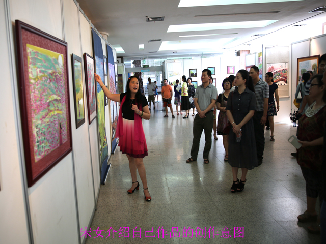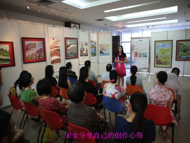 如何爱上绘画?宋女在自己的个展开幕式上告诉大家,绘画是因为这些画是她灵魂深处的潜流,是她心空弥漫的歌声,画帮助她打开了尘封在心底的那份神秘记忆,滋润着心田并为之感动;画是母亲的血脉在她自己身上的延续,更是她勃发生命的浓浓绿意……丘晓兰为宋女个人画展做了热情洋溢的致辞,她赞扬宋女多才多艺,作为作家的同时还能绘制出这么多、这么美、这么有趣的画作,难能可贵!李雁庄重地为画展宣布开幕。该展展出宋女画作近百幅,这些画作无不突出新、奇、美、思四大特点。作为一个先是作家之后才是画家的艺术家,宋女的画从构图、造型和设色等方面都已脱出前人的窠臼和突破传统的束缚,拥有自己独特的格调,很有创新立意的趣味。