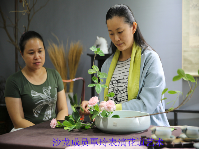 眉黛青颦、温婉优雅、插花起落间散发的柔美与风韵最是迷人……镜头对准的是沙龙成员覃玲。她就是一直以来义务为沙龙提供活动阵地“万仟堂”的“堂主”,在接受采访时她说:“参与朱槿花女子读书沙龙的读书主题活动不仅圆了我的读书梦,更让这种文化元素融入我的企业,使得企业的发展越来越红火。”