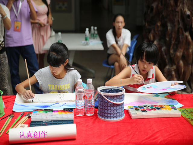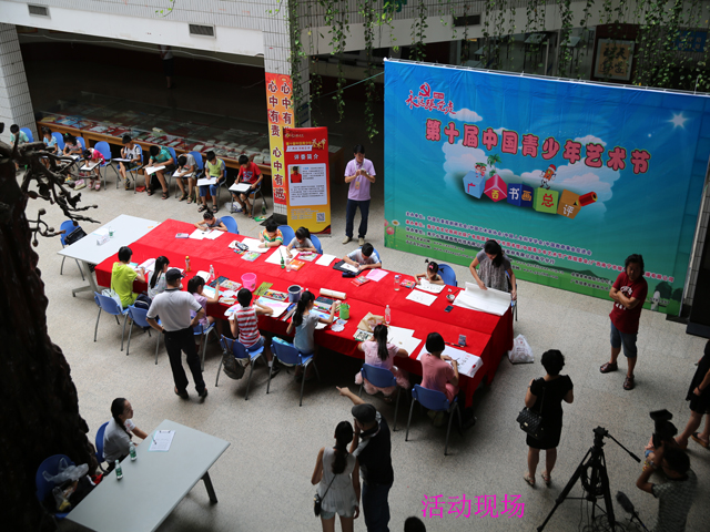7月11日上午,由中国艺术家协会、中国儿童戏剧研究会、中国人生科学学会、中国教育事业促进会主办,南宁市文化新闻出版广电局团委及南宁市图书馆等单位共同承办的“永远跟党走”第十届中国青少年艺术节广西书画总评市图举行在南宁市图书馆读者大厅举行。近50位小朋友现场创作,用画笔和想象描绘“七彩童年”。