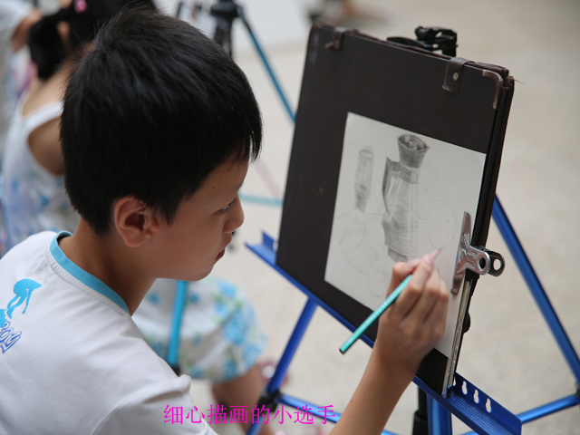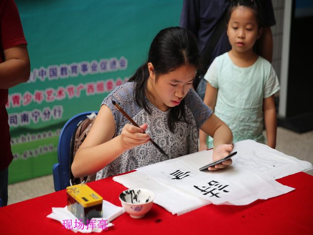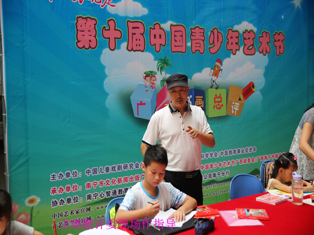 当天的比赛要求小朋友们在限定的两个小时内,运用平时的学习积累和奇思妙想进行现场创作,用现场创作的作品参与评选。主办方还邀请到中国水墨艺术研究会研究员、广西艺术学院教授王晓鹏;南宁市图书馆读者活动部全维明主任为孩子们做现场指导。经过2个小时的精心创作,参赛小选手们的一幅幅作品跃然于纸上,书画类型涵盖了素描、水彩、水粉、隶属、小纂等,这些作品承载着大家的美好童年愿景和对未来的希望。