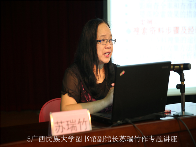 16日上午广西民族大学图书馆副馆长苏瑞竹主讲“信息检索策略——效果与实例分析”。苏馆长从信息检索策略、效果评估以及搜索资料的步骤与方法等三个方面,理论阐述结合实例分析,对网络环境下的个性化信息组织进行多层面剖析,教导大家如何能够在海量资源中快速精确地找到自己所需并有效地对其加以整合。下午特邀了广州图创计算机软件开发有限公司经理岑培育作“图书馆集群管理服务体系建设——管理指引,技术创新”专题报告。岑经理全面介绍了我国公共图书馆在开展体系化、网络化、智能化建设方面的经验和发展趋势,和学员们探讨了技术创新对促进公共图书馆智能化建设的影响。如广州少儿图书馆推出首个信息咨询机器人,利用它的导航功能,能够帮助读者快速定位图书的位置,从而提高服务效能。