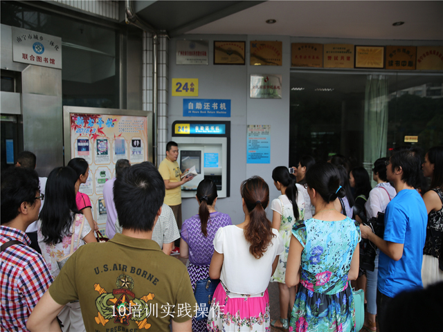 17日上午王主任带领学员进行图书馆智能化设备的实践操作,学员们表现出极大的热忱,亲自动手操作了自助借还机、电子书借阅机等设备;接下来的专题交流环节,学员们对南宁市城乡一体化联合图书馆建设过程中出现的问题展开讨论,市图技术部副主任陈啸秋对学员们提出的问题进行梳理、归纳并一一耐心解答,现场气氛活跃。