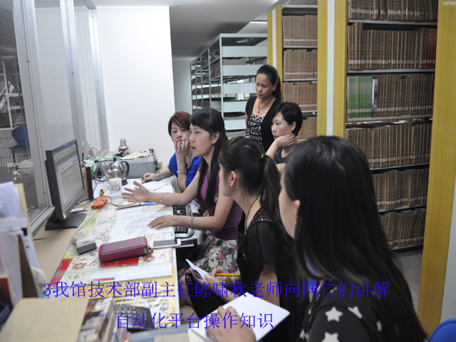 随后,我馆采编部、技术部、期刊部、辅导部、财务等部门主任及业务骨干分别与百色市图书馆同仁进行业务交流,并现场指导图书馆自动化系统操作应用。