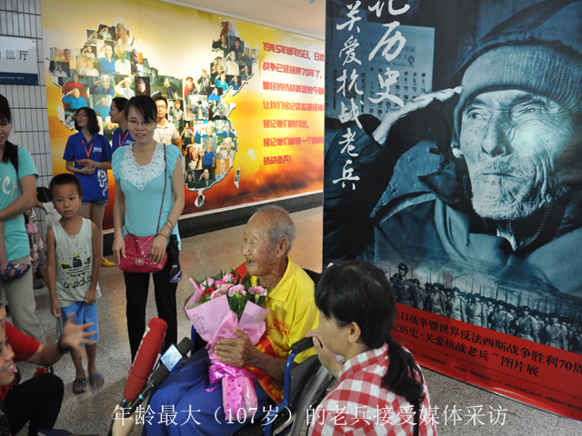 当天上午,所有参加活动的领导、嘉宾、老兵以及他们的后代们一起走进“铭记历史•关爱抗战老兵”大型图片展,与广大市民共同回顾历史,感慨时代发展。图片展是由关爱抗战老兵南宁志愿者团队多年来寻找、慰问、探访抗战老兵的过程中记录下来的珍贵图片,分为“抗战老兵晚年个人特写”和“我与抗战老兵的故事”两个板块,真实再现抗日英雄晚年的精神面貌,表达了志愿者与各界爱心人士对抗战老兵的无上尊敬。