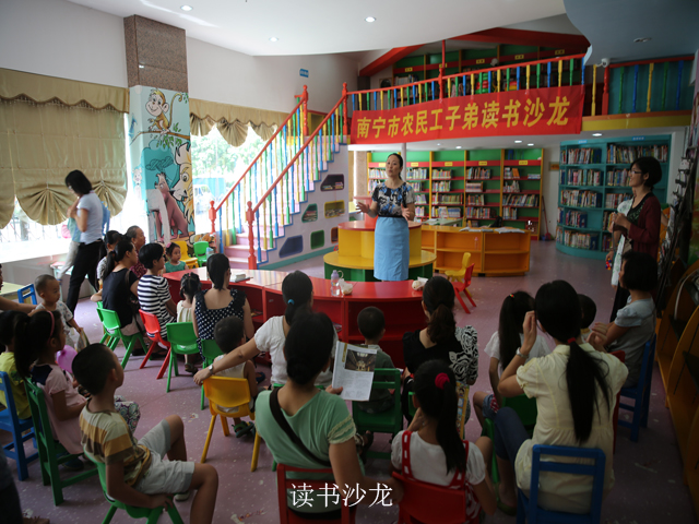 8月15日上午,为了能让广大南宁市农民工子弟共享“七彩童年”暑期阅读活动,鼓励小朋友们用阅读充实暑期时光,一场农民工子弟读书沙龙活动在南宁市图书馆启智书苑拉开帷幕,活动吸引了众多外来务工人员带领着小朋友前来参加,大朋友、小朋友欢聚在一起,分享阅读精彩,共度阅读时光。