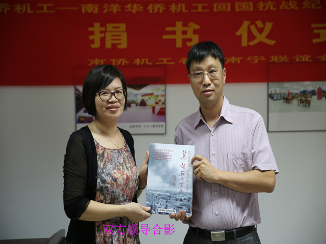 南侨机工眷属南宁联谊会为南宁市图书馆捐赠了20多册有关南侨机工回国抗战的宝贵史书刊物,为市图书馆填补了反映华侨特别是南洋华侨机工回国参加抗战史的空白。此次活动旨在为纪念中国人民抗日战争暨世界反法西斯战争胜利70周年,践行社会主义核心价值观,弘扬中华民族的爱国主义精神和南侨机工卫国献身的精神,让更多的广大读者更好地读懂认识华侨抗战史,了解南侨机工那可歌可泣的英雄故事,懂得南侨机工的意义。缅怀先烈,铭记历史,珍惜和平,开创未来。