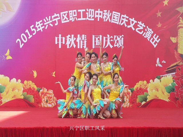 9月25日上午,在热闹的开场节目《南百鼓势》欢快的鼓乐声中,2015年兴宁区职工“迎中秋•庆国庆”文艺演出在悦荟社区广场正式拉开序幕,随后《鸿雁》、《邕州风情》、《风生水起北部湾》、《中国范》、《阳光路上》等一曲曲精彩的歌舞相继登场,博得了在场300多名观众的阵阵掌声。