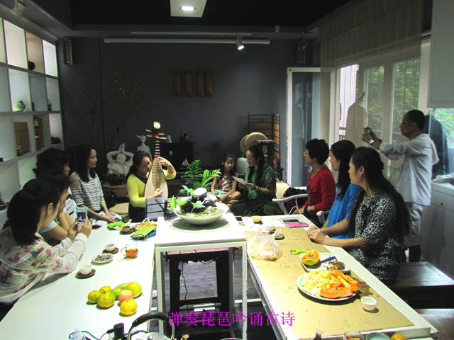 10月5日,南宁市图书馆朱槿花女子读书沙龙在青秀山如意坊万仟堂文化会所举办了一场“迎国庆•吟诗颂秋”读书主题活动。作为该活动雅致而精彩的开场曲,成员梁知弹奏了音调古朴、风格淡雅的琵琶曲《出水莲》,她以丰富的表现技艺将出水莲的神态、气质刻画得栩栩如生,与此同时,成员黄珂和着琵琶曲吟诵了北宋理学家周敦颐的散文诗《爱莲说》,无论是乐曲,还是美文,这种以诗和曲的形式充分表现了在丰收的季节里,莲花这种花中君子坚贞的品格,更歌颂了绿城人民的高尚情操和洒落胸襟。