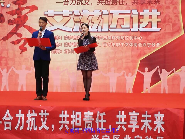 由南宁市总工会、南宁市疾病预防控制中心联合举办的“ 2015年南宁市‘世界艾滋病日’职工文艺演出”宣传活动,12月7日在悦荟广场举行,南宁市图书馆受邀参与了此次活动。主办方通过文艺表演、知识竞答、职工书画表演等生动活泼的形式吸引市民,同时开展现场咨询,引导市民养成优良的生活习惯。参加此次宣传活动的文艺节目均是来自全市企事业单位、基层工会自编自导的“防治”宣传作品,这些作品包括歌舞、诗歌朗诵、小品等。南宁市图书馆携手南宁百货股份有限公司将精心排演的“防艾”主题诗歌朗诵《飘扬的红丝带》带到了活动现场。