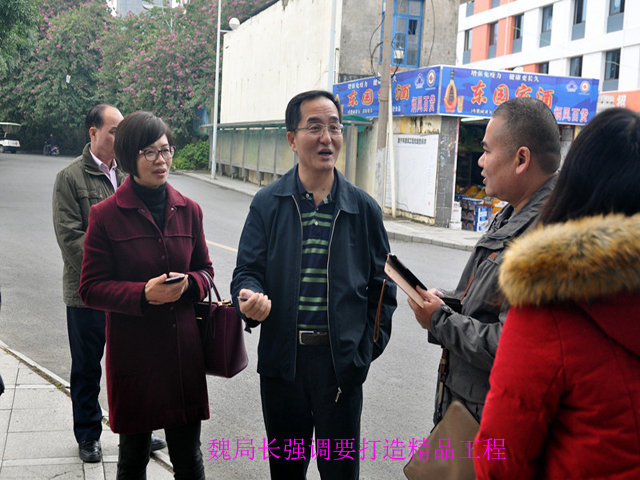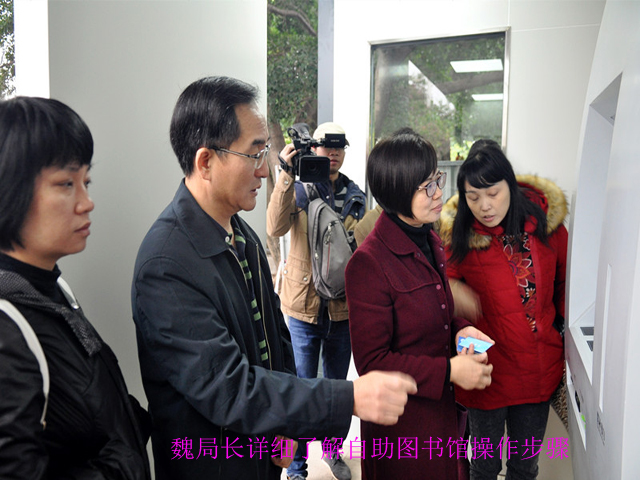 南宁市社区24小时自助图书馆西乡塘区友爱广场服务站配置的是能容纳840册图书的自助图书馆设备,是全国第三台最大容量的自助图书馆。在施工现场,魏局长一行实地检查了自助图书馆外设防雨棚的工程质量、安全措施及工艺标准执行情况,详细了解了自助图书馆服务设备的质量工艺、运行原理,并认真观摩工作人员实际操作自助服务设备的每一个环节。南宁市图书馆领导班子在现场向督查组汇报了其他9个建设点的建设进度。听取汇报后,魏局长对该项目建设工作给予充分肯定,并在项目建设管理、质量管理、运行维护、宣传推广等方面提出了具体的指导意见。魏局长强调,要精心打造精品工程,让为民办实事项目名副其实,改善城乡居民的阅读条件,满足市民群众的阅读需求,最大限度地发挥出自助图书馆应有的社会效益。他提出了三点要求:一是要建立健全项目管理制度和完善技术手段,促进项目管理的标准化、规范化、科学化,特别是要建立应急响应机制,这是做好24小时自助图书馆服务工作的重中之重;二是要综合运用报纸、广播和电视等传统媒体对项目进行宣传报道,吸引市民群众深入了解24小时自助图书馆的使用方法,让他们感受到“每个社会成员都能平等享受图书馆阅读服务”;三是要积极创新宣传途径,充分利用微信、微博和网站等新媒体加大宣传力度,进一步扩大宣传的覆盖面和影响力,着力营造广泛支持、积极参与的良好氛围,推动全民阅读活动的深入开展。