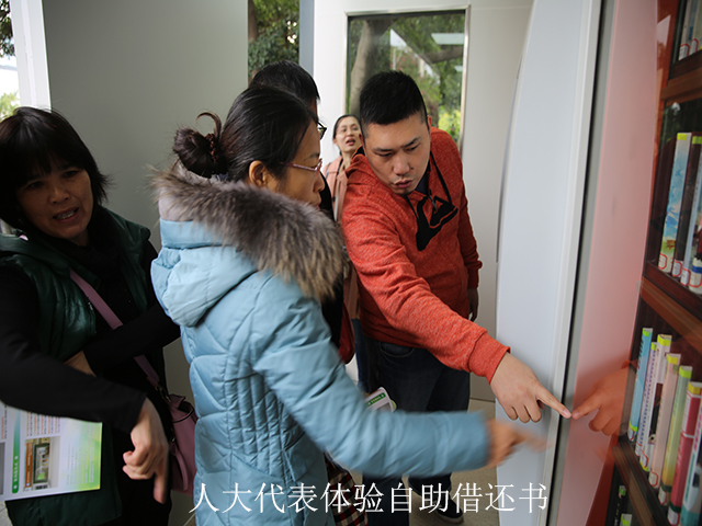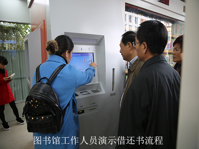 考察团一行现场听取了南宁市图书馆副馆长陆庆关于“南宁市社区24小时自助图书馆”项目的工作汇报,并观摩图书馆自助借还机的操作演示过程。高科技的自助服务,让考察组切身体会到文化创新给日常生活带来的喜悦变化。代表们表示,社区24小时自助图书馆项目的建设,不仅体现了“文化服务民生、民生构建和谐”的理念,而且能满足市民就近、便捷、灵活享受文化服务的需求,有效保障群众的基本文化权益,有利于提升我市的公共文化服务水平和文化软实力。
