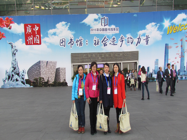 2015年12月16日上午,在蒋桂香副馆长的带领下,我馆业务骨干4名参加了在广州举行的,由文化部主办,广州市人民政府、中国图书馆学会、国家图书馆、文化部全国公共文化发展中心、中国古籍保护协会承办,广东省文化厅协办的2015年中国图书馆学会年会。