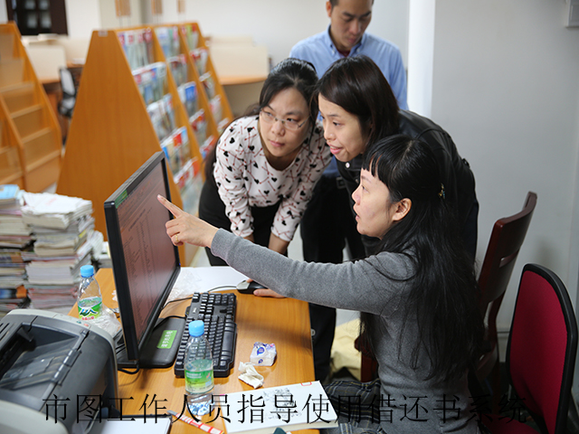 市图书馆工作人员一到达目的地就马不停蹄地卸货、拆包、分类排号、上架、排架……忙得热火朝天。书籍整理完毕后,图书馆一行还与市人大机关相关负责人进行了业务交流。邵主任对南宁市人大机关图书流通分馆的办馆宗旨、目标、服务对象、馆藏特色、功能以及工作的方向、业务的范围提出了思路及建议,同时耐心指导他们图书分类、整架等方法。市图技术部副主任陈啸秋也就借还书系统的操作和馆藏登记等业务技能进行了示范及讲解。