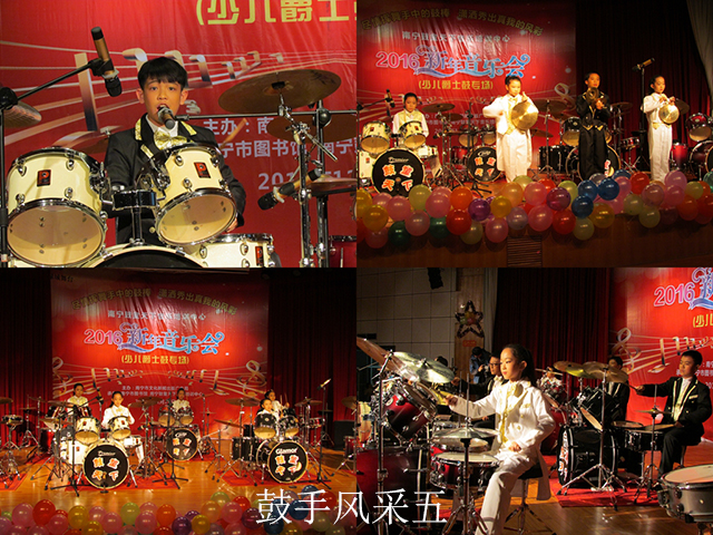 12月26日晚上,“鼓童天下•2016新年音乐会”在南宁市图书馆多功能厅震撼上演,这场由南宁市文化新闻出版广电局主办,南宁市图书馆与南宁鼓童天下音乐培训中心联合承办的少儿爵士鼓专场演奏会,为来自社会各界的市民读者献上了一场架子鼓敲奏与中西乐曲完美融合的音乐盛宴。