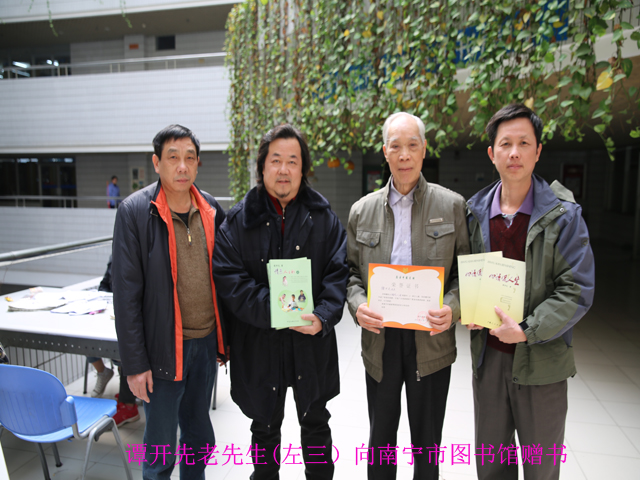 2月18日,谭开先老先生携带自己的两本著作走进南宁市图书馆,为我馆捐赠了其撰写的《情系人之初(上、下)》及《心语侃人生》两套共30册图书。南宁市图书馆党支部副书记廖集光、读者活动部全维明主任代表南宁市图书馆接受了赠书。