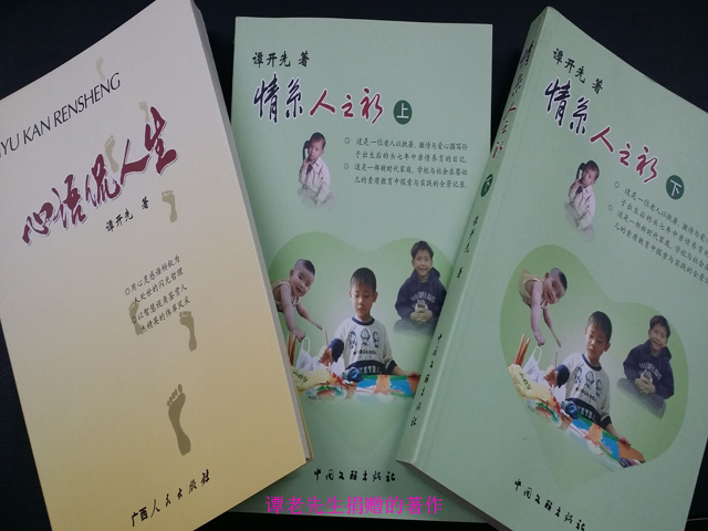 此次谭老先生向南宁市图书馆捐赠的《心语侃人生》一书,360多篇短文写的是各色人生、精彩人生、美好人生,特别对那些堪称人杰的翘楚表现,作者以激扬感奋的情怀尽致地去歌颂与赞美。而《请系人之初(上、下)》丛书则是以一位老人书写孙子出生后的头七年中亲情养育的日记。是一部新时代家庭、学校与社会在婴幼儿的素质教育中探索与实践的全景记录。这些图书,将由南宁市图书馆著录后在馆内作永久收藏,在南宁市图书馆的地方文献和社会科学阅览室上架,面向广大读者开放借阅。