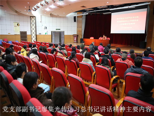 党支部副书记廖集光传达了习总书记讲话精神的主要内容。党支部书记贺南潮作了总结发言,他强调了学习习总书记讲话精神的紧迫性和重要性,要求各部门在集中学习后要自行开展小组学习,党员、干部个人也要进行自学。他重点指出了48字党的新闻舆论工作职责使命,要求全体党员认真学习、深刻领会习总书记讲话精神,增强看齐意识,在思想上政治上行动上同党中央保持高度一致;结合自己的工作实际,牢牢坚持正确舆论导向,牢牢坚持正面宣传为主,主动借助新媒体的传播优势,做好图书馆的宣传工作。