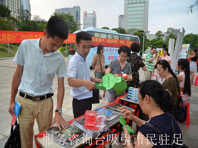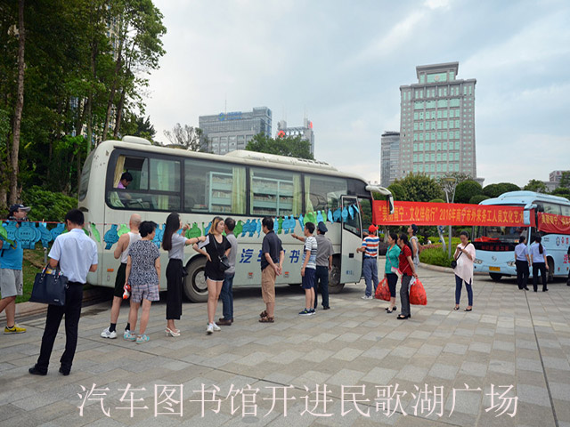 2016年5月27日下午,南宁市2016年外来务工人员文化艺术节启动仪式现场活动在民歌湖广场精彩启动,南宁市图书馆图书流通车驶入广场,开展了一场以“阅读,从图书馆出发”为主题的别开生面的阅读推广文化活动。