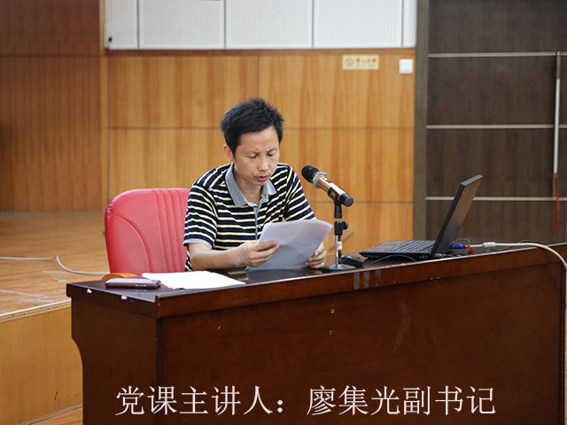 习总书记强调,“没有规矩,不成方圆。党章就是党的根本大法,是全党必须遵循的总规矩。” 认真学习党章、严格遵守党章,是全党同志的必修课,也是“两学一做”学习教育的起点和基础。课上,廖副书记从“学与思结合、学与省结合、学与习结合、学与信结合”四个方面要求全体党员在工作中、生活中做好党章学习。在讲到学与省结合时,廖副书记敢于亮短,自我剖析,深刻反思自身存在的不足,并决心在今后的工作生活中改进;在讲到学与习结合时,他又以辅导部为例,表扬了他们在资产清查工作过程中冒着烈日上山下乡到各个流通点盘点文献资产的奉献精神,号召全体党员向他们学习。