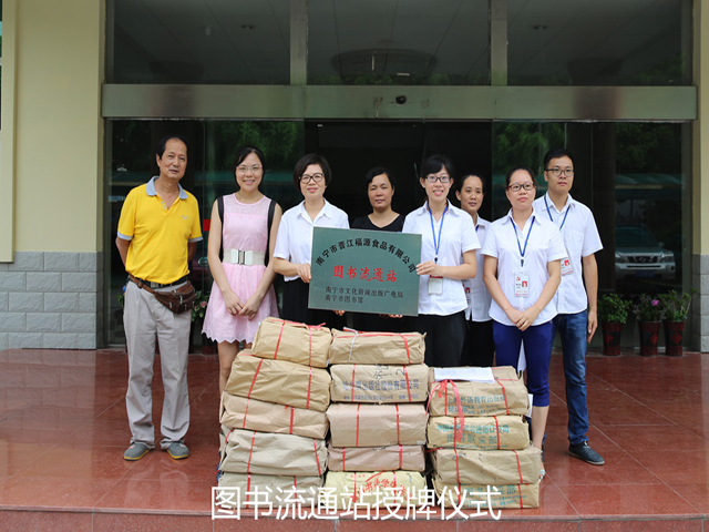 7月4日上午,南宁市图书馆副馆长蒋桂香带领辅导部一行5人到南宁市晋江福源食品有限公司建立新的图书流通站,为该流通站送去了经济类、文学类、教育类书籍共600册。
