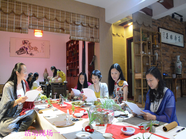 香道文化发源于中国,是历史悠久的汉族传统艺术,从早期的简单用香,到后来的富有文化气息的品香、咏香,体现的是优雅而从容的生活情趣和生活态度。在互动分享环节,“绿城玫瑰”们品位了这种生活,她们手持香纂,学习香道这一修身养性的雅事。在倒流香古朴的气息里,在悠扬的古筝琴声中,她们静心而专注。夏末的炎热渐渐离她们远去,只留下香道馆里,这一幅幅女人与香相依相融的优美画卷……活动的最后,这些知性而灵动的“绿城玫瑰”们在香笺上留下了各自的感受,“绿城玫瑰”村村长丘晓兰将这些“玫瑰香语”收集汇总,并在现场做出一首主题诗:《香约•玫瑰雅集第七季》。