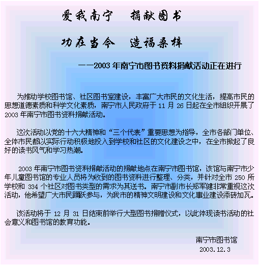 时间:2003年12月3日 作者:黄珂 来源:南宁市图书馆 浏览:18735