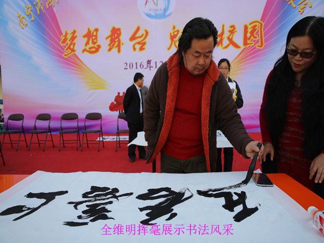 笔触游走宣纸之间,翰墨书写新年愿景。2016年12月30日下午,南宁市沛鸿中学的校内操场人声鼎沸,热闹非凡,沛鸿中学第21届校园文化艺术节暨2017年迎新联欢会在这里举行。南宁市图书馆把迎新书法比赛活动带到了艺术节当中,师生和家长一起在传统文化当中挥毫泼墨,共享书法魅力。