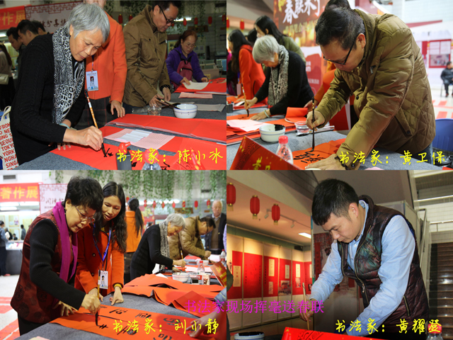 活动当天,南宁市图书馆邀请到了中国书法家协会会员、南宁市书法家协会主席黄卫保等四名书法家来到活动现场,挥毫书就满堂春,为读者送上红红火火的春联,也送出了最吉祥的祝福。为了得到书法家的墨宝,读者们在大厅里排起了长龙,而获赠春联的读者相互之间还品评交流,喜悦之情溢于言表。