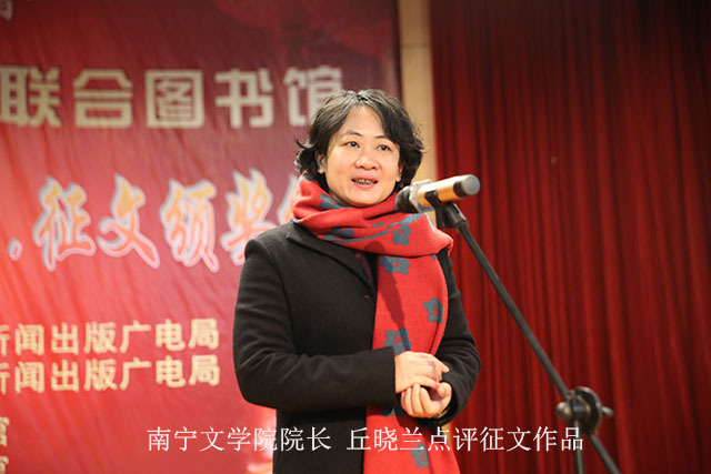 作为终评评委,南宁市作协主席丘晓兰在颁奖仪式上对本次征文比赛进行了点评。丘晓兰表示,给评委留下深刻印象的有三类文章,第一类是立意高远、思维视野比较开阔、行文结构比较严谨,“这一类稿子数量不是很多,但都是当之无愧的获奖作品”。第二类是天然去雕饰,质朴与纯真兼备,行文也流畅自然的稿子,“这一类稿子篇幅不太长,但贵在‘真’”。第三类则是比较类
