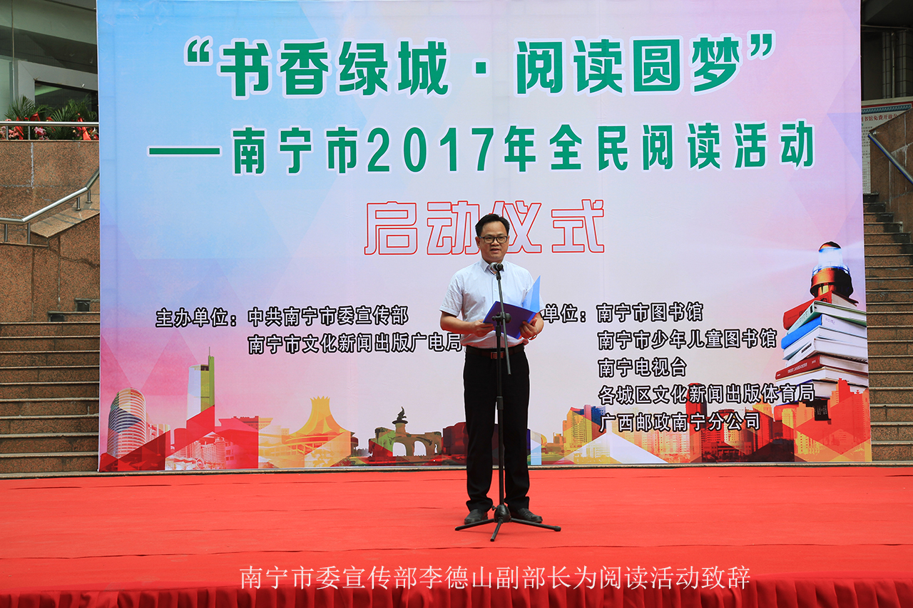 4月23日上午,“书香绿城•阅读圆梦”——2017年南宁市全民阅读活动启动仪式在市图书馆隆重举行,南宁市委宣传部副部长李德山、南宁市文化新闻出版广电局副局长樊琴等有关领导出席了活动,并参加了当天围绕“书香绿城·阅读圆梦”为主题而同时开展的一系列文化活动。