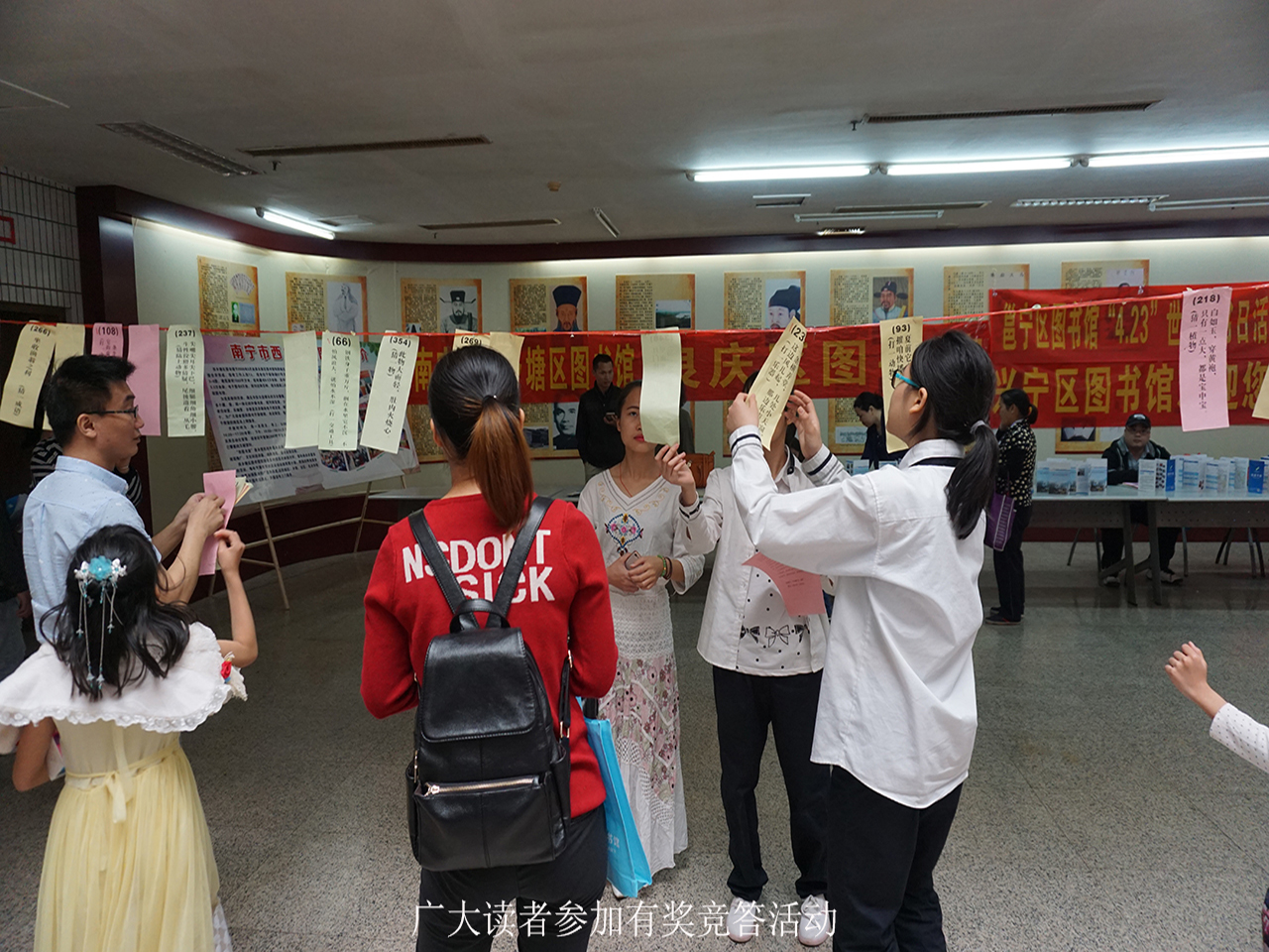 等活动,以及南宁市少年儿童图书馆带来的“爱薇园绘本故事会”、“绿城蒲公英展廊”等活动吸引了众多市民读者的参与,大家纷纷举起大拇指为当天的十余个主题活动点赞。有的参与者对由唐仲亭、施娟、杨泽民等文化名人以及绿城玫瑰女作家群和广大市民同台表演的“阅读者”朗诵会十分感兴