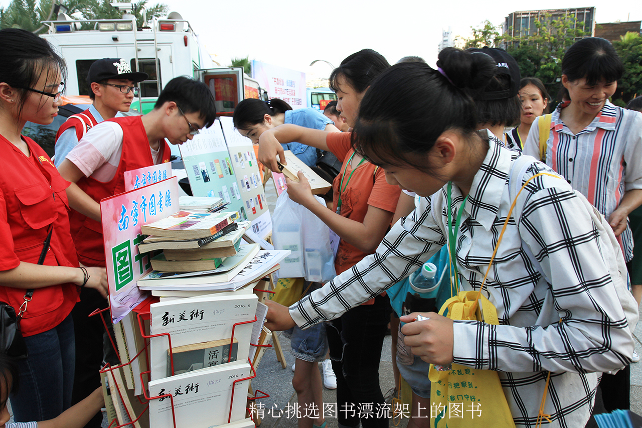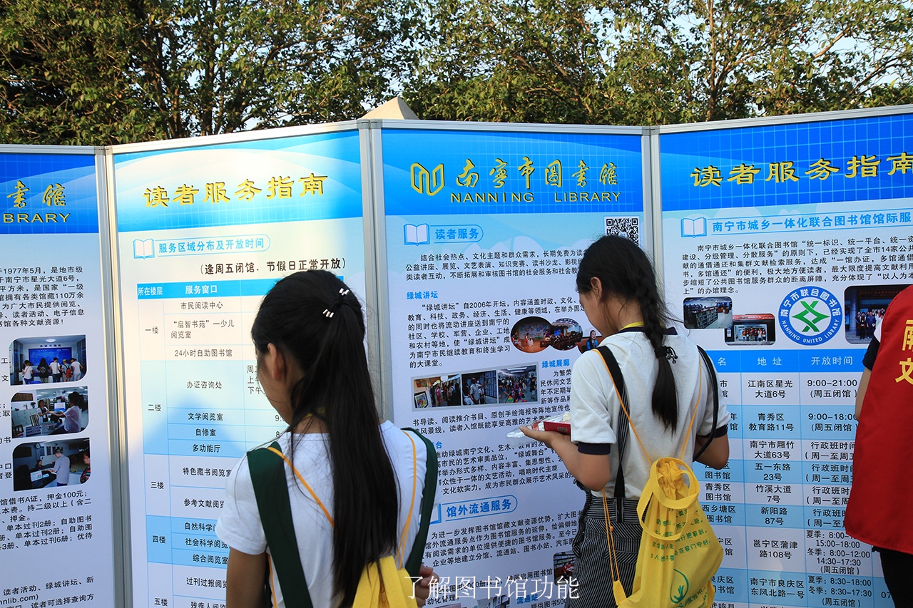 在南宁民歌湖区域及水上舞台,南宁市图书馆图书车进广场,为到场读者免费提供书刊阅读服务,并现场办理借书证;南宁市图书馆图书漂流进广场,为市民读者提供一批书刊,在广场进行阅读漂流活动;同时,扫码送小礼活动进广场,南宁市图书馆为每一位到场扫描宣传海报上二