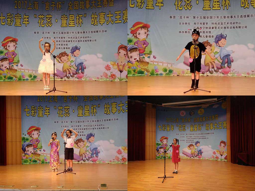 为了弘扬中华民族的语言文化,提倡和引导孩子们热爱母语,热爱有声阅读,让孩子们能用母语自信地在舞台上展现语言美,南宁市图书馆联合南宁市时尚花蕊文化艺术中心和南宁市妙语童星语言艺术教育中心,于6月17日举办了一场精彩的“七彩童年”——“花蕊·童星”杯故事大王赛。