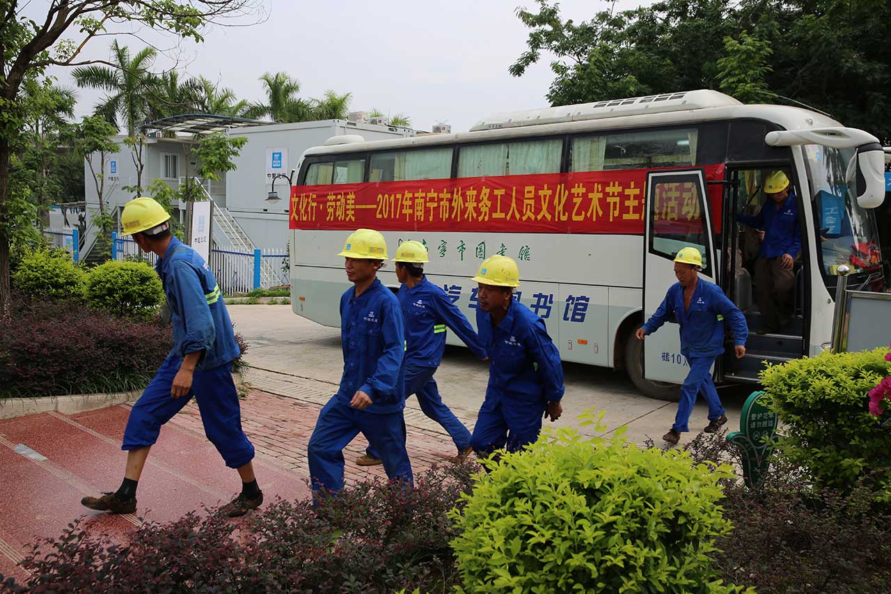 自2017年“文化行 劳动美”南宁市外来务工人员文化艺术节启动以来,全市丰富多彩的主题活动火热开展,为广大进城务工人员送上了丰盛文化大餐。6月21日下午和6月27日下午,南宁市图书馆分两次来到了南宁心圩江公园中建交通建设集团南宁快速路1标项目建设工地指挥部和南宁兴宁区三塘镇正林汽修厂后中建交通项目部开展主题文化活动。