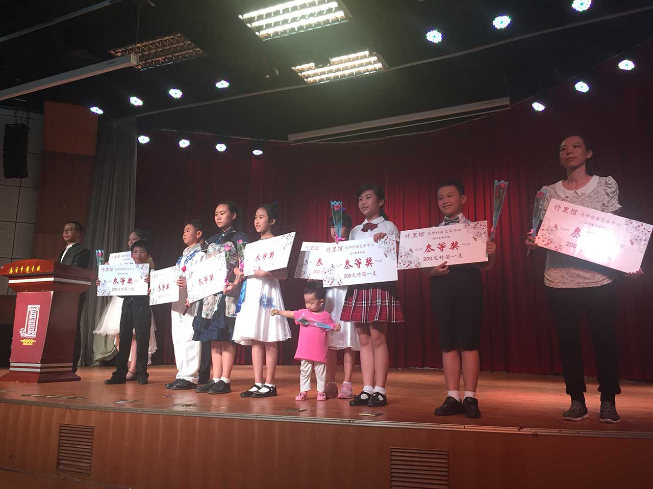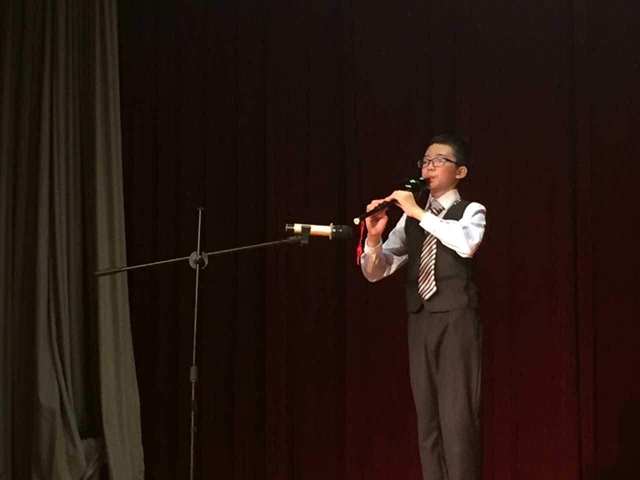 本次绿城舞台·七彩童年——竹里馆2017年汇报演出音乐会依旧由南宁市图书馆与竹里馆·笛箫葫芦丝艺术中心携手主办。和往年不同的是,本次演唱会师生们只用了长笛、排笛、葫芦丝3种传统乐器,50多名学生轮番登场,共演奏了二十多首曲目。虽然今年音乐会的乐器使用稍显集中,但是学生们演奏的曲目难度和往年相比更上了一个层次。开场曲笛子独奏《绿洲》,就是需要演奏者掌握极快的指法变化,还需要演奏者掌握“笛孔半按”技巧,半点差别就会出现音准失误。但王艺霖小朋友,用娴熟的技巧和丰富的感染力,出色的完成了这首高难度曲子,带领大家感受了沙漠绿洲的风情与美丽。